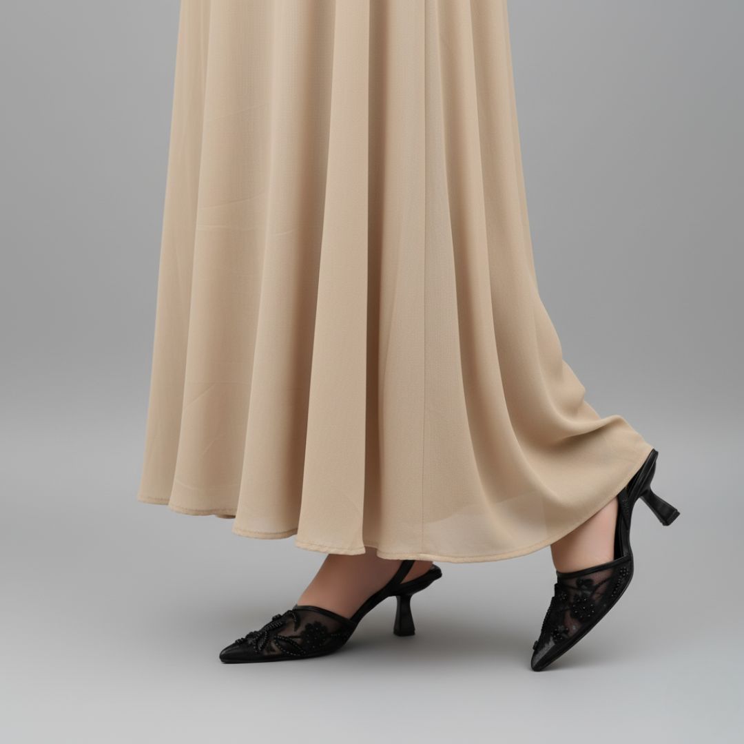 Step into sophistication with these stunning Black Hand-Embroidered Kitten Heels. Designed with intricate hand embroidery and delicate beadwork, these heels add a touch of grace to any outfit. The comfortable 2.2-inch heel provides the perfect lift, while the elastic band strap ensures a secure and flexible fit. Ideal for festive occasions, parties, or elegant evenings out — these heels combine traditional artistry with modern style for the perfect statement look.